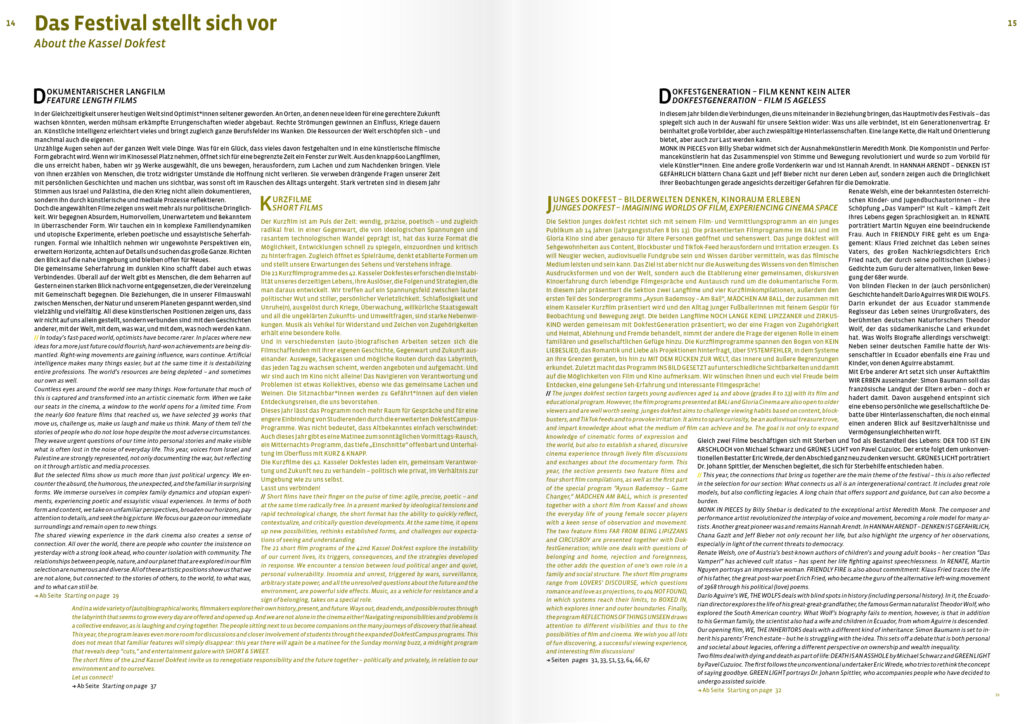 In diesem Umfang betreue ich das Kasseler Dokfest kontinuierlich seit dem 17. Kasseler Dokfest.