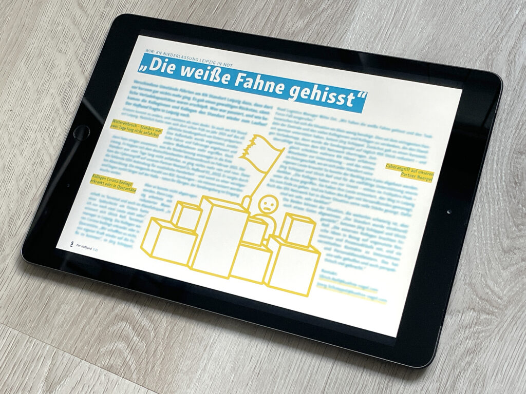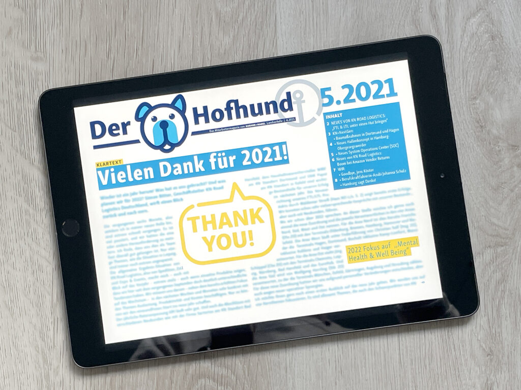 Konzept, Grundlayout und regelmäßiges Layout des digitalen Mitarbeitermagazins, Illustrationen, Entwicklung des Hofhund-Logos und diverser Abwandlungen